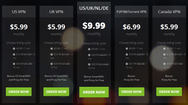 根据位置和专用 IP 地址与共享 IP 地址,价格在每月 5 美元到 15 美元之间。