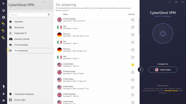 • 收藏地址 - 为您最常用的服务器打上星标,无需每次都滚动我们的务器位置列表。